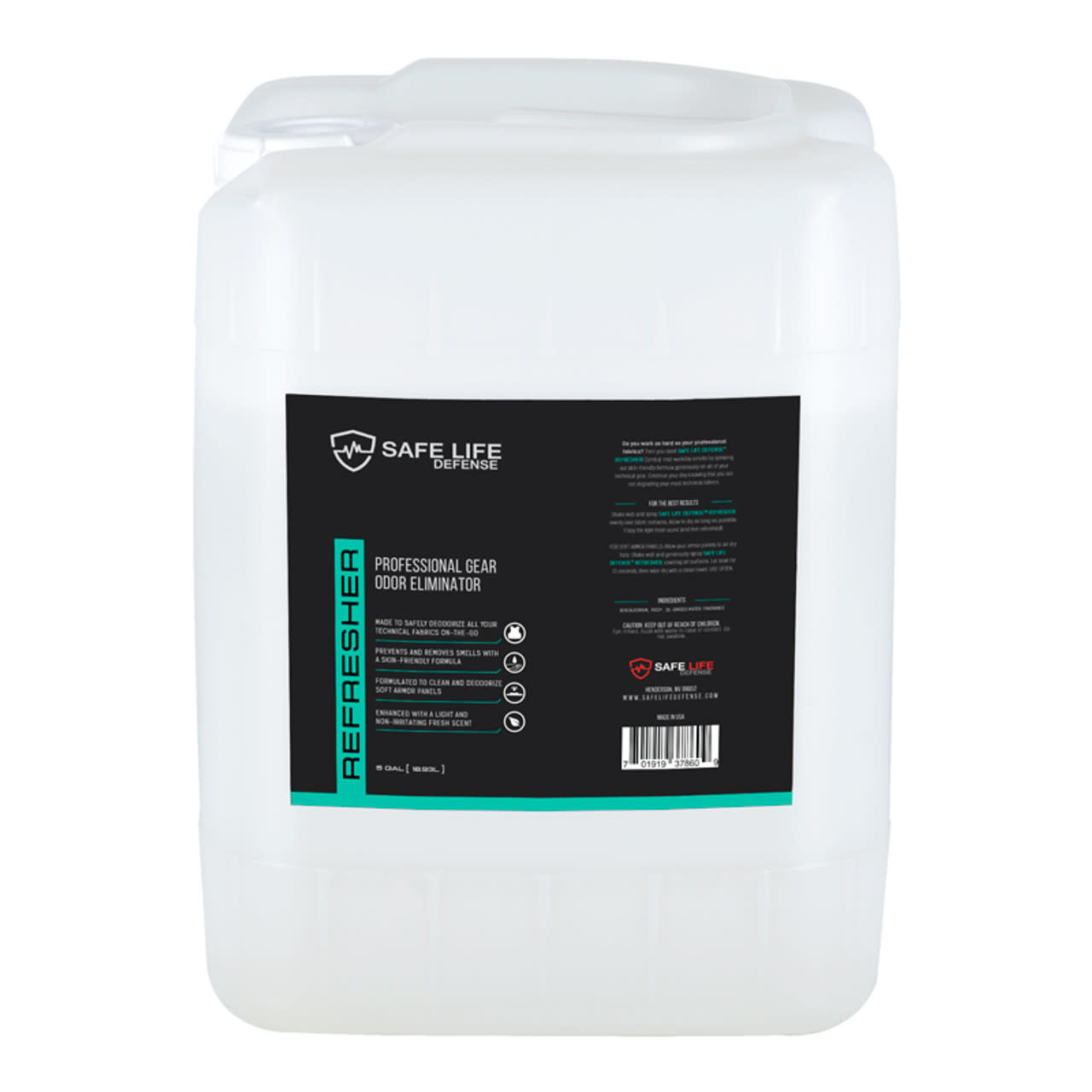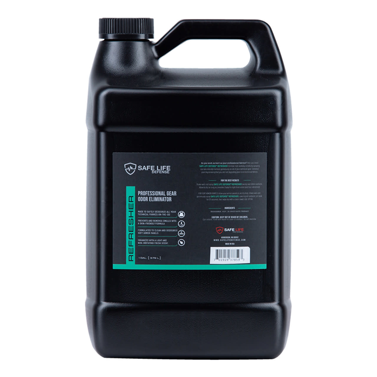 SAFE LIFE DEFENSE REFRESHER Combat work-day smells by spraying our skin-friendly formula generously on all of your tactical gear. Use this to clean your ballistic panels to maintain their lifespan and structural integrity - NO harmful dyes or chemicals!